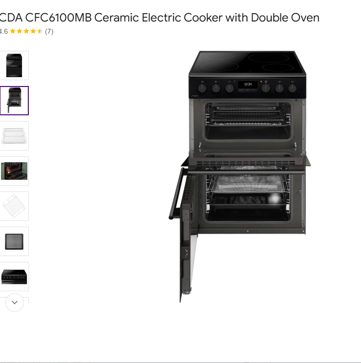 CDA CFC6100MB 60cm Black Free Standing Double Oven Ceramic Top